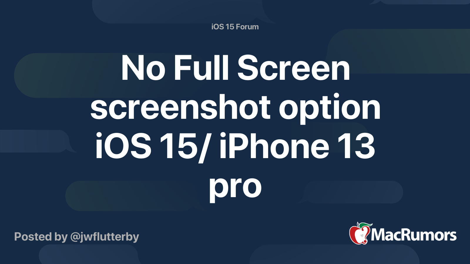 No Full Screen Screenshot Option Ios 15 Iphone 13 Pro Macrumors Forums